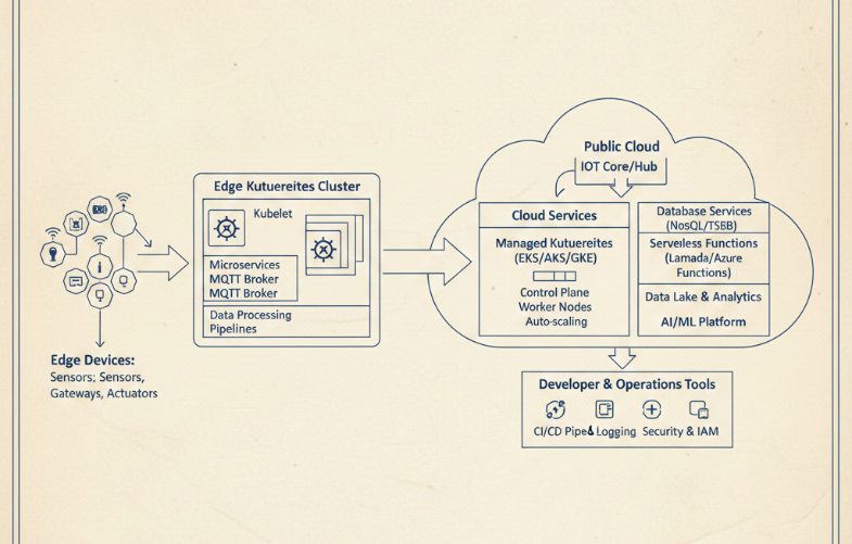 Cloud-native IoT works by breaking a traditionally monolithic IoT system into a distributed, modular, and highly automated pipeline that stretches from physical devices at the edge to microservices and data platforms in the cloud. Instead of one large application managing everything, the workload is divided into smaller, independent services—each responsible for a single job—and deployed across orchestrated infrastructure like Kubernetes.